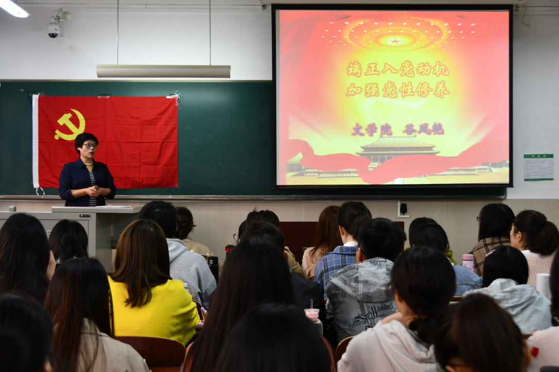 谷凤艳最后强调,“一个党员一盏灯,一个党员一面旗。”每一名积极追求进步的青年学子要深刻理解这句话的深刻内涵,以实际行动在思想政治、学习实践、工作锻炼、社会生活等方面充分发挥先锋模范作用,不忘初心、牢记使命,勇于拼搏、砥砺前行,从而将自己锻造成为理想远大、德才兼备、知行合一、全面发展的社会主义建设者和接班人,为党旗增光添彩。